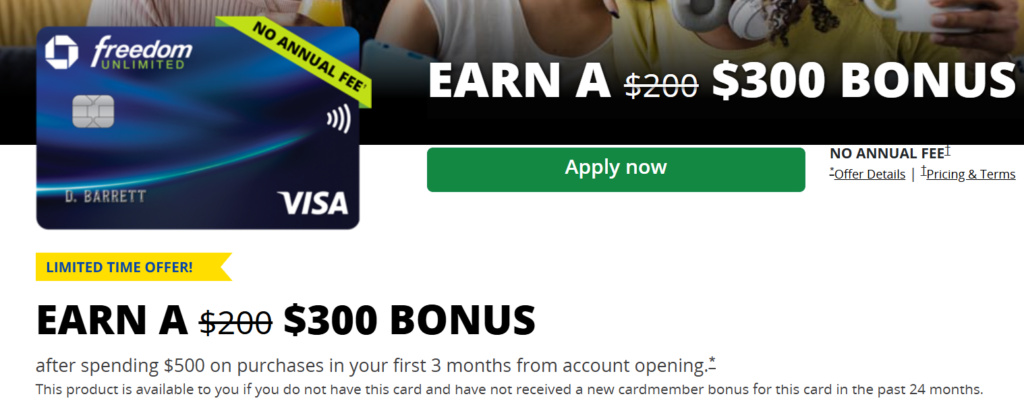 ・パーソナルカード/Chase Freedom Unlimited【期間限定!300ドルGET!】
