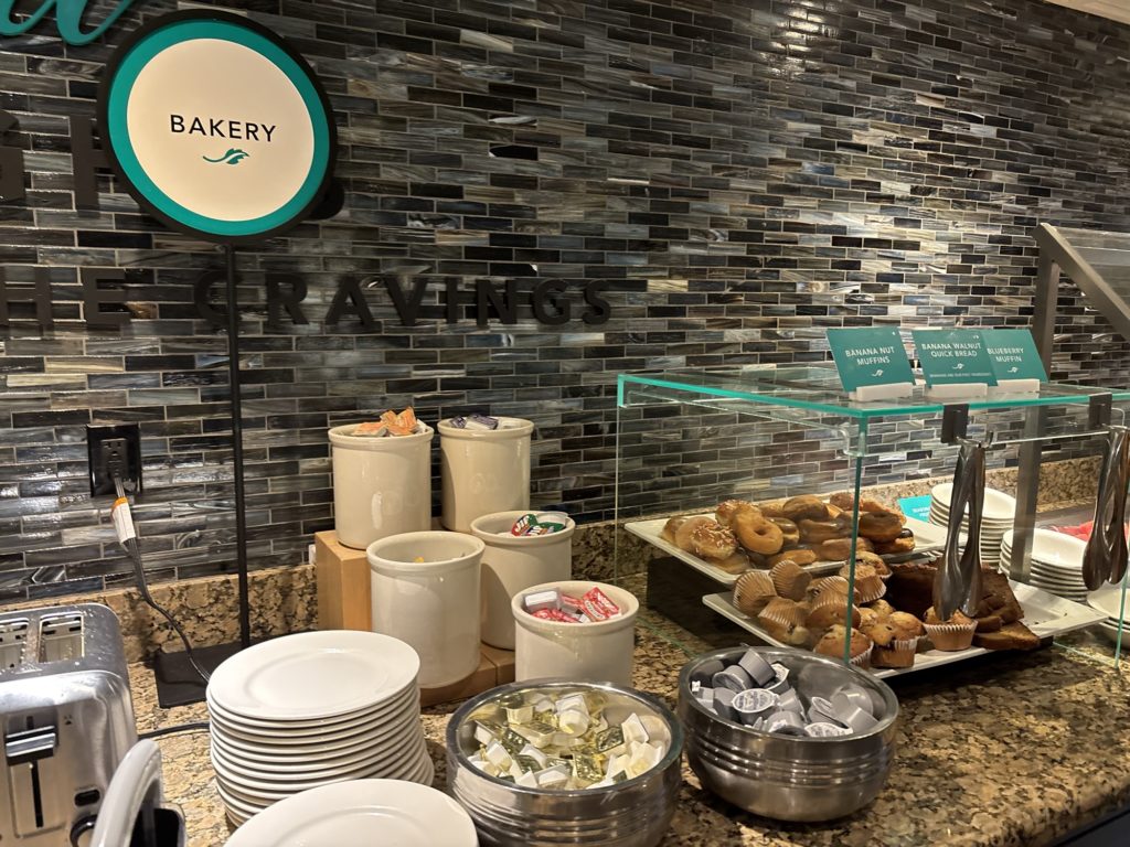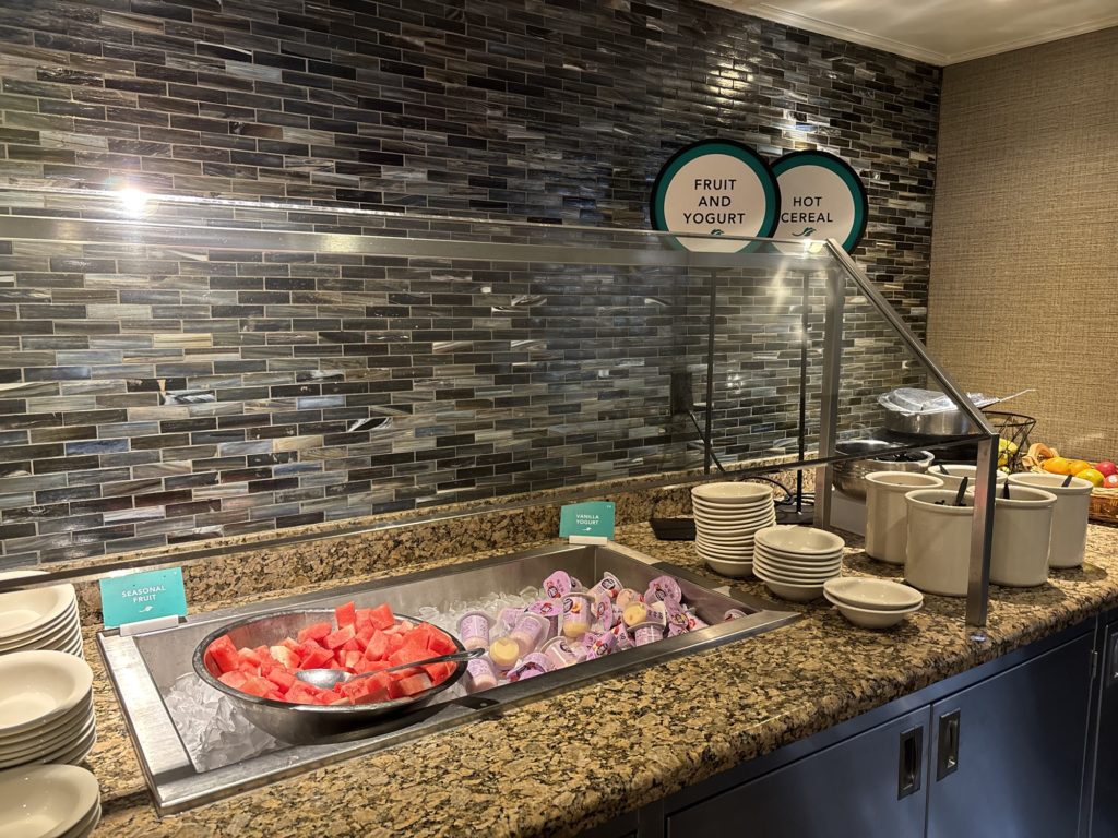 朝食は卵料理とサイド(ソーセージ、ハム、ポテト)をその場でオーダーして作ってもらえました!そのほかにもドリンク、スタバのコーヒー、フルーツ、オートミール、パン、パンケーキ、スクランブルエッグ、なども自由にいただけました!
