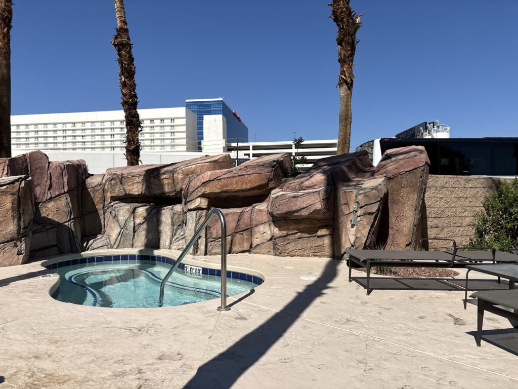 朝食無料でオーダーメイドオムレツが人気です。ハッピーアワーはイブニングレセプションで軽食やドリンクが無料提供されます。ジャグジーやビリヤード設備もあり、観光で疲れた体を癒やすのにぴったりです。ストリップから少し離れているので、静かに過ごしたい方にもおすすめです。部屋が広く、ファミリーや長期滞在にも向いています。