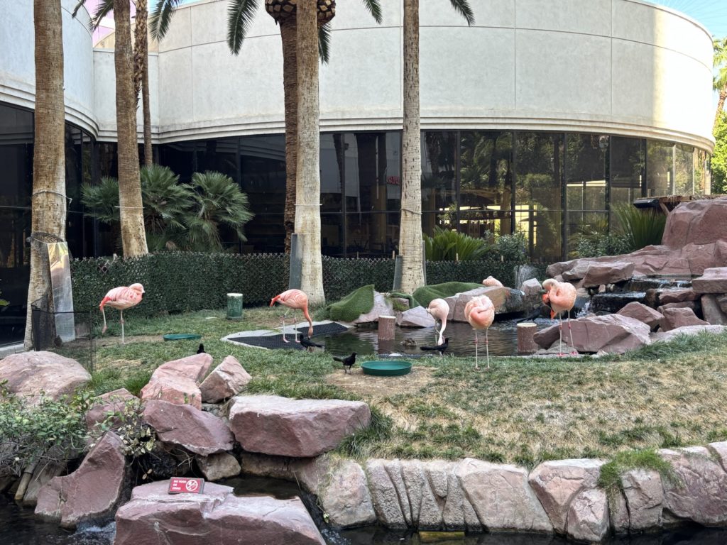 本物のフラミンゴやカメ、とりなどが見られる癒やし空間です。観光の合間の休憩にもぴったりで、木陰でのんびり過ごすこともできます。